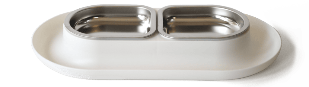 Our NomNom bowls are made of food-safe stainless steel dishes on a PP plastic tray.